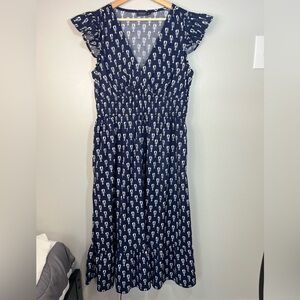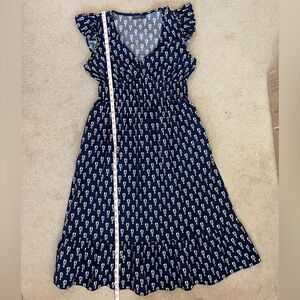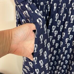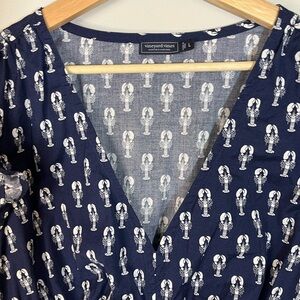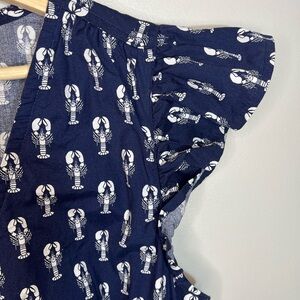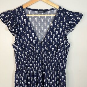 Vineyard Vines Navy Lobster Print Cotton Flutter Sleeve Maxi Dress Women’s Large