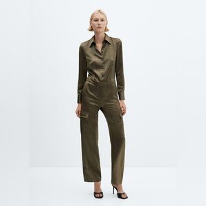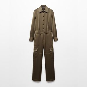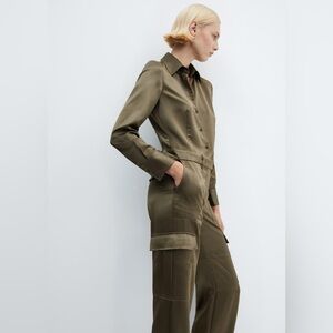 Mango khaki satin jumpsuit NWT