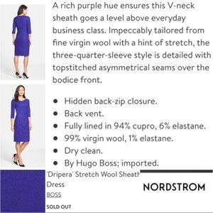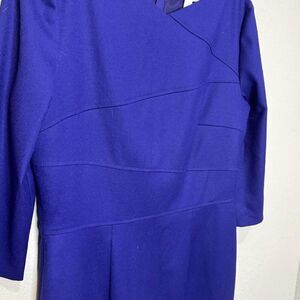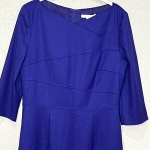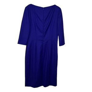 BOSS Dress Womens US 6 Blue Dripera Sheath Three Quarter Sleeve Knee Length Workwear