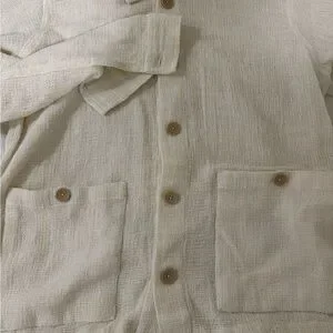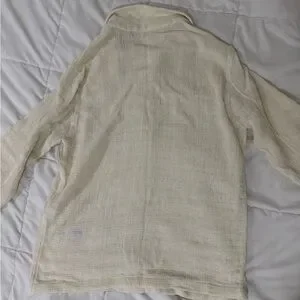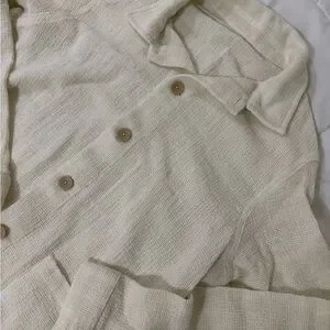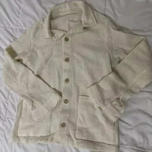 Beautiful ZARA textured cream button-down jacket. Stylish and minimalist with a soft woven finish. A perfect layering piece for spring, fall, or cool summer nights.