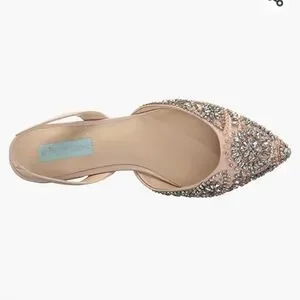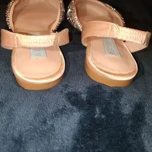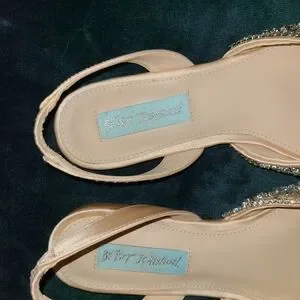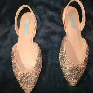 Brand new only tried on in the house. With the sparkle box. Prettiest shoes ever! Champagne Satin and rhinestones.