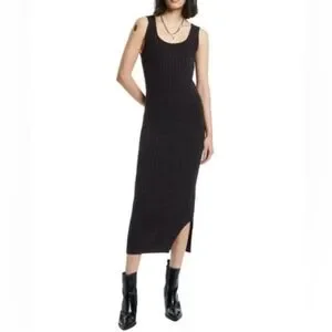 AllSaints Brown Wool Alpaca Blend Margo Knit Ribbed Midi Dress | Size Small