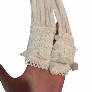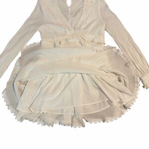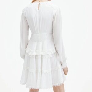AllSaints Zora Dress Mini Tiered Lace Long Sleeve White in size US 10. Double lined, sheer sleeves. In excellent preowned gently used condition, no known flaws.