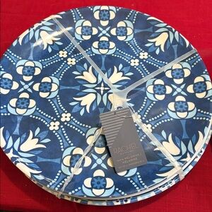 NWT Set of 8 BLUE AND WHITE MELAMINE DINNER PLATES