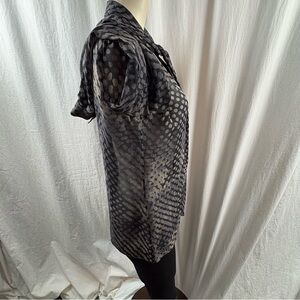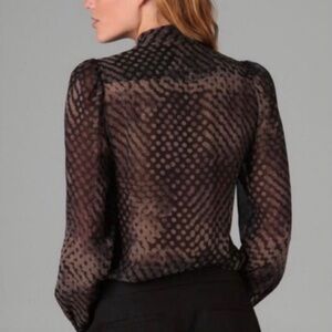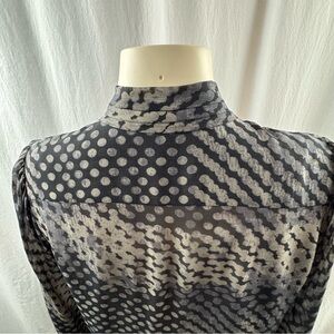 Theory Silk Primo Blurred Tie-neck Black,Grey and beige Patterned Blouse M