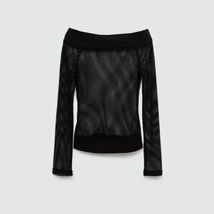 Cotton blend fabric. Straight design. Openwork design. Boat neck.