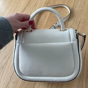 Chic Kate Spade crossbody bag in white. Features a stylish handle and adjustable strap.
