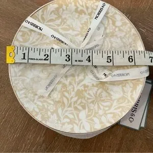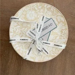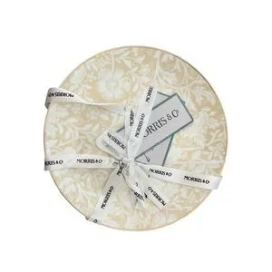 Elegant round decorative plate featuring a classic William Morris–style floral pattern in soft cream and beige tones. Tied with original Morris & Co branded ribbon, making it perfect for display or gifting. Timeless Arts & Crafts–inspired design that works beautifully as home décor, shelf styling, or a statement accent piece.