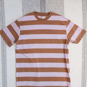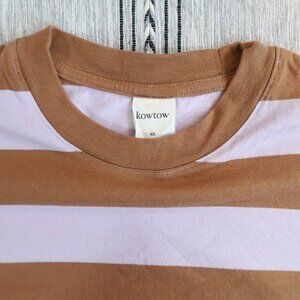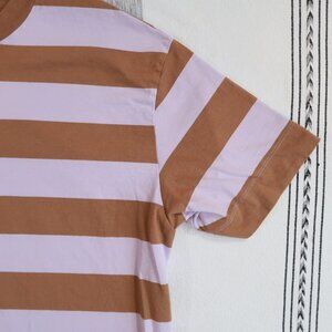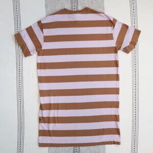 Kowtow T-Shirt Dress in a women's XS. Made from a soft and comfy 100% organic cotton, this has an oversized fit, and is in the Lilac/Earth Stripe color. Clean, and in excellent preowned condition.