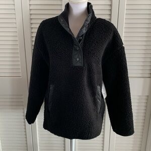 Athleta Cozy Sherpa Snap Sweatshirt Women’s Black Fleece Pullover NWT Size Large