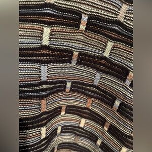 Stylish St. Croix Knits sweater in XXL. Features a classic striped pattern in black, gray, and cream. Very popular.