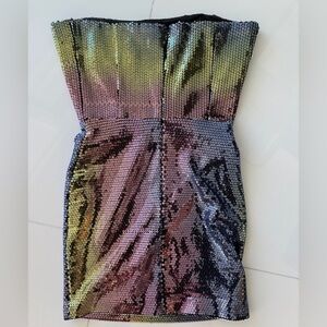 The New Arrivals by Ilkyaz Ozel strapless sequin mini dress in a stunning multicolor finish. Designer sequin mini dress by Ilkyaz Ozel — strapless, multicolor, and ultra-glam.A bold, statement-making piece featuring allover sequins with a structured strapless silhouette that hugs the body beautifully.