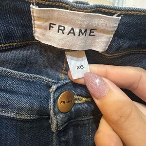 FRAME Le Skinny de Jeanne Fayette Mid-Rise Stretch Jeans Women’s 26 Dark Wash Raw Hem