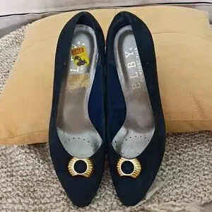 navy heels with a stylish gold accent. Brand: Selby (often associated with their "Comfort Flex" line).