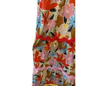 CeliaB Nilsa Floral Ric Rac Smocked Tie Strap Midi Dress Size Medium