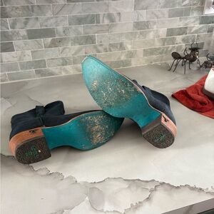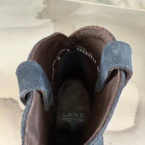 Step out in style with these chic suede ankle boots. Perfect for any occasion, these black boots offer both comfort and elegance.dark navy suede ankle bootie’s by Lane. Very good condition, snip toe, size 9