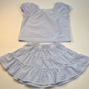 Crewcuts Girls Cotton Blue and White Striped Top and Skirt Set Sz 6-7