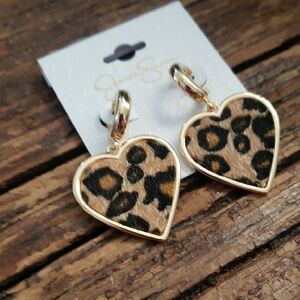 Jessica Simpson Leopard Print Heart Earrings with Gold Accents