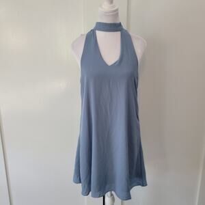 Lulus Size S Groove Thing Slate Blue Swing Dress Halter Neckline Flowy Casual