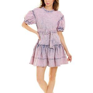New TANYA TAYLOR Alissa Mini Denim Pink/Purple Belted Dress P1060