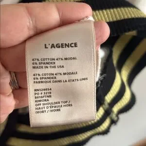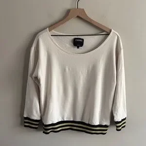 L'AGENCE • Cream knit top with Black and Fold stretch Hem