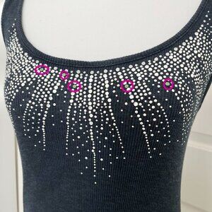 Step into the spotlight with this rare Y2K-era Wet Seal black ribbed maxi dress, featuring a sleek body-hugging silhouette and a dazzling crystal neckline. The sparkle is subtly dramatic, with a few missing crystals (see photos) that don’t detract from the overall glam—thanks to the intact base material. A true collector’s piece for lovers of vintage, goth glam, and early 2000s fashion.