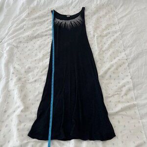 Vintage Wet Seal Crystal-Adorned Ribbed Maxi Dress – Y2K Glam Goth Revival, S/M