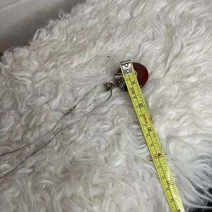 Beautiful sterling silver necklace featuring a polished carnelian donut pendant in a rich red-orange hue. The smooth, glossy stone has a warm natural glow and is accented with an ornate sterling silver setting and small red stone details for added visual interest. Hung from a sleek sterling silver chain, this piece has a timeless boho-artisan look that works beautifully layered or worn alone.