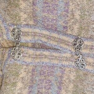 Beautiful 100% wool sweater/cardigan in a multi pastel print.