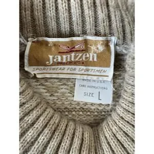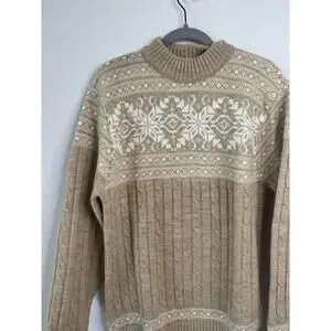 Vintage Jantzen Knit Sweater Men’s Size L Beige White Snowflake Nordic Fair Isle USA