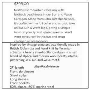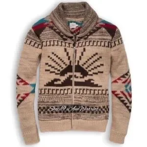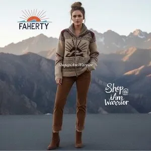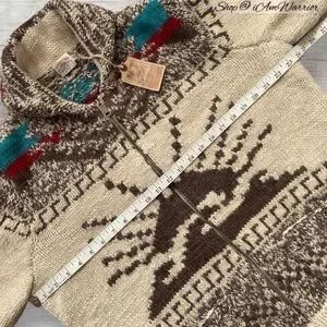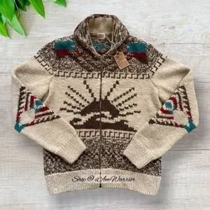 Amazing NWT Faherty Peruvian hand-knit shawl cardigan in rustic sun & wave pattern for Northwest mountain vibes. Full zip closure, front pockets. Perfect with a long sleeve tee & denim for this season. Size XXL, see photos for measurements. Retailed at $398 & sold out everywhere! Listed at retail to to rarity/value!