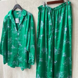 NEW Size Medium Free People Dreamy Days Satin Pajama 2 Piece Set Green Jelly