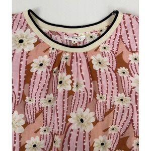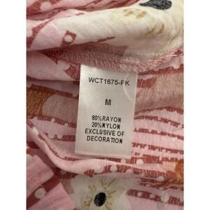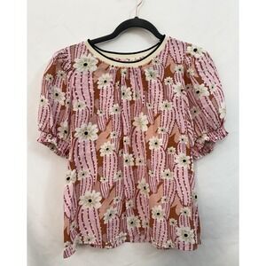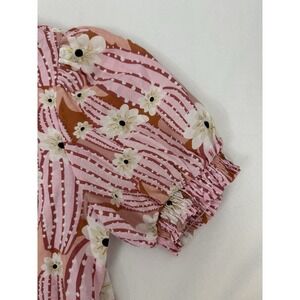 THML Pink Floral Puff Sleeve Crew Neck Top Blouse Womens Size M