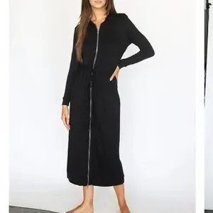 By Tess Maxi Hoodie Black Long Sleeve Zip Front Dress XS