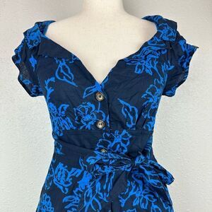super cute blue and black dress! measures 19 inches armpit to armpit and 34 inches shoulder to hem