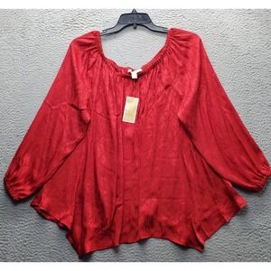 Michael Kors Jacquard Handkerchief Off Shoulder Blouse Womens 2X Red WH340KBADN