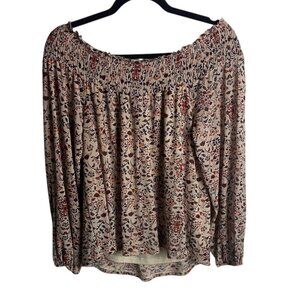 Day Trip Size Medium Mesh Off the Shoulder Top Neutral Floral Boho Prairie Fall