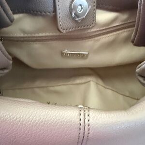 This elegant taupe handbag is perfect for any occasion. Its versatile design complements any outfit. Lightweight and has a lot of storage room. Versatile with a short handle and an adjustable, removable shoulder strap. Great color for any season. NWT