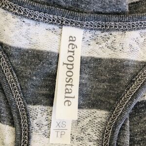Chic Aeropostale top with charcoal and white stripes. Elegant lace accents.