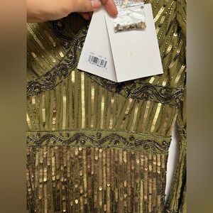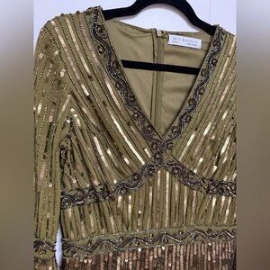 Please note due to the intricate nature of the gown, it's possible there could be a slight flaw loose string, missing bead or sequin, etc.) After close review, I'm not finding anything major.