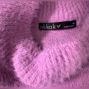 Featuring beautiful pearl accents along the sleeves, it's perfect for any occasion. Beautiful and ultra-soft pink fuzzy knit sweater from Nikka K