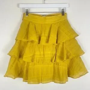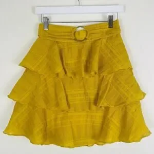 Tularosa Tiered Mini Skirt With Ring Design Yellow Size Small