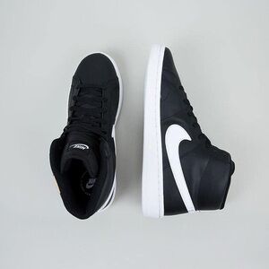 Elevate your look with Nike mid-top sneakers. Black body with white swoosh. Stylish and comfortable for everyday wear.