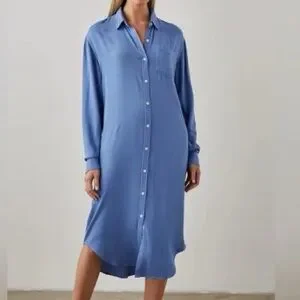 Chic long sleeve shirt dress by Rails. Soft blue fabric with button-up front. Ideal for versatile styling.