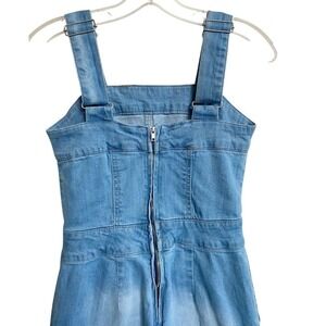 These Dollhouse denim overalls feature a trendy light wash with a flattering wide-leg cropped fit. Designed with adjustable shoulder straps, a fitted bodice, and a back zipper closure, they offer a modern take on vintage-inspired fashion. The subtle pleated hem detail adds a unique touch, making these overalls perfect for casual outings, festivals, or layering for a chic streetwear or boho aesthetic. Made from sturdy yet comfortable denim, they are an essential piece for any wardrobe.
