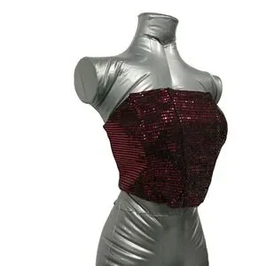 Shine bright with this stunning sequin strapless top. Perfect for a night out, this red top adds a touch of glamour to any outfit.