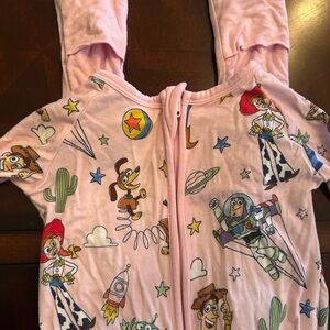 Adorable footies with Disney Toy Story character prints. Soft pink fabric. Ideal for cozy nights.