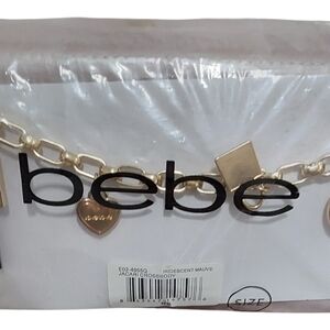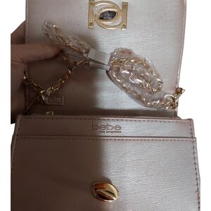 Nwt bebe Jacari quilted shoulder or crossbody bag in iridescent mauve with charms. 3 pockets and turn lock closer.