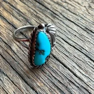Beautifully made vintage turquoise ring! Size 7. A nicely crafted Native American ring. There is a hairline crack that can be seen in the last photos. It is not noticeable and the stone is very secure and doesn’t move in the setting at all. Sterling silver but this is an older ring and is not marked. Vintage turquoise, Native ring, turquoise ring, Native American ring