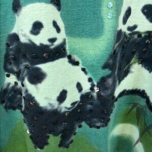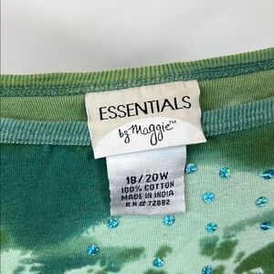 Essentials by Maggie Y2K Green T-shirt with Panda Sequin & Blue Stones 18/20W